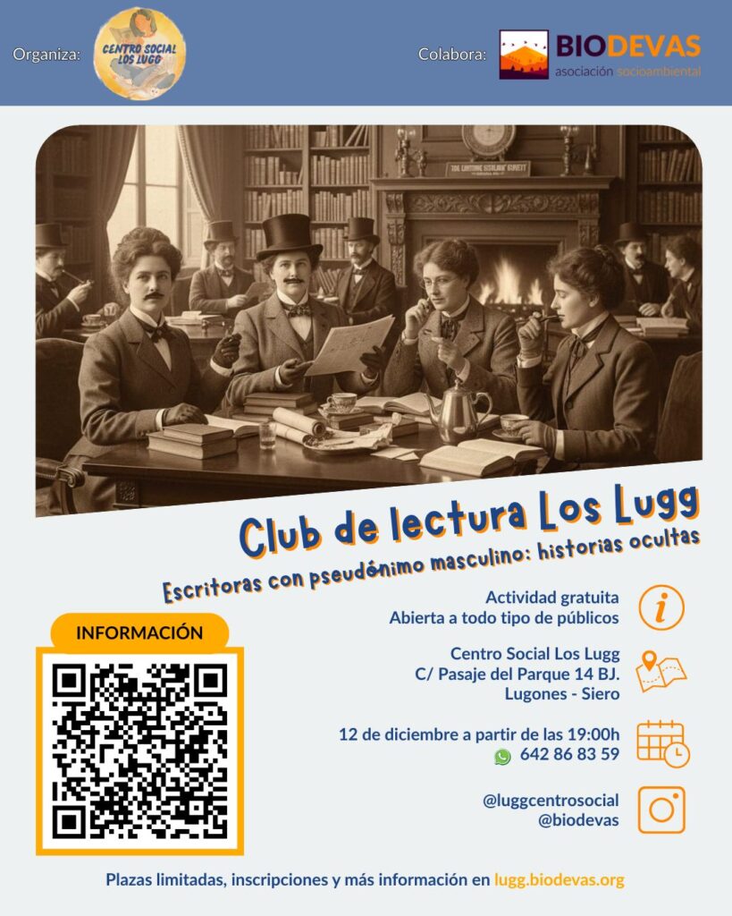 Este viernes 12 de diciembre a las 19:00 vuelve a reunirse el Club de Lectura Los Lugg, y en esta ocasión exploraremos un tema tan fascinante como revelador: las escritoras que publicaron bajo pseudónimo masculino. ✒️✨