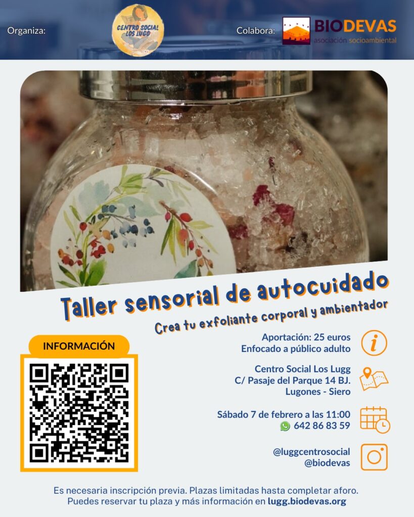 - 🎫 Aportación: 25 euros (además de la formación, te llevarás un exfoliante y ambientador)